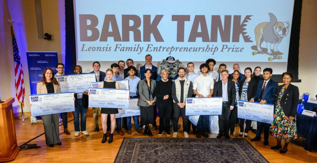Find the results of the annual Leonsis Family Entrepreneurship Prize "Bark Tank" pitch.…